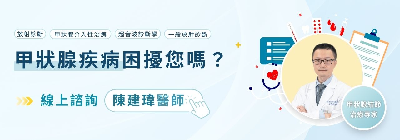 陳建瑋醫師為放射科專業醫師,熟悉甲狀腺結節的治療方式,精準治療為患者保留甲狀腺功能與外觀!